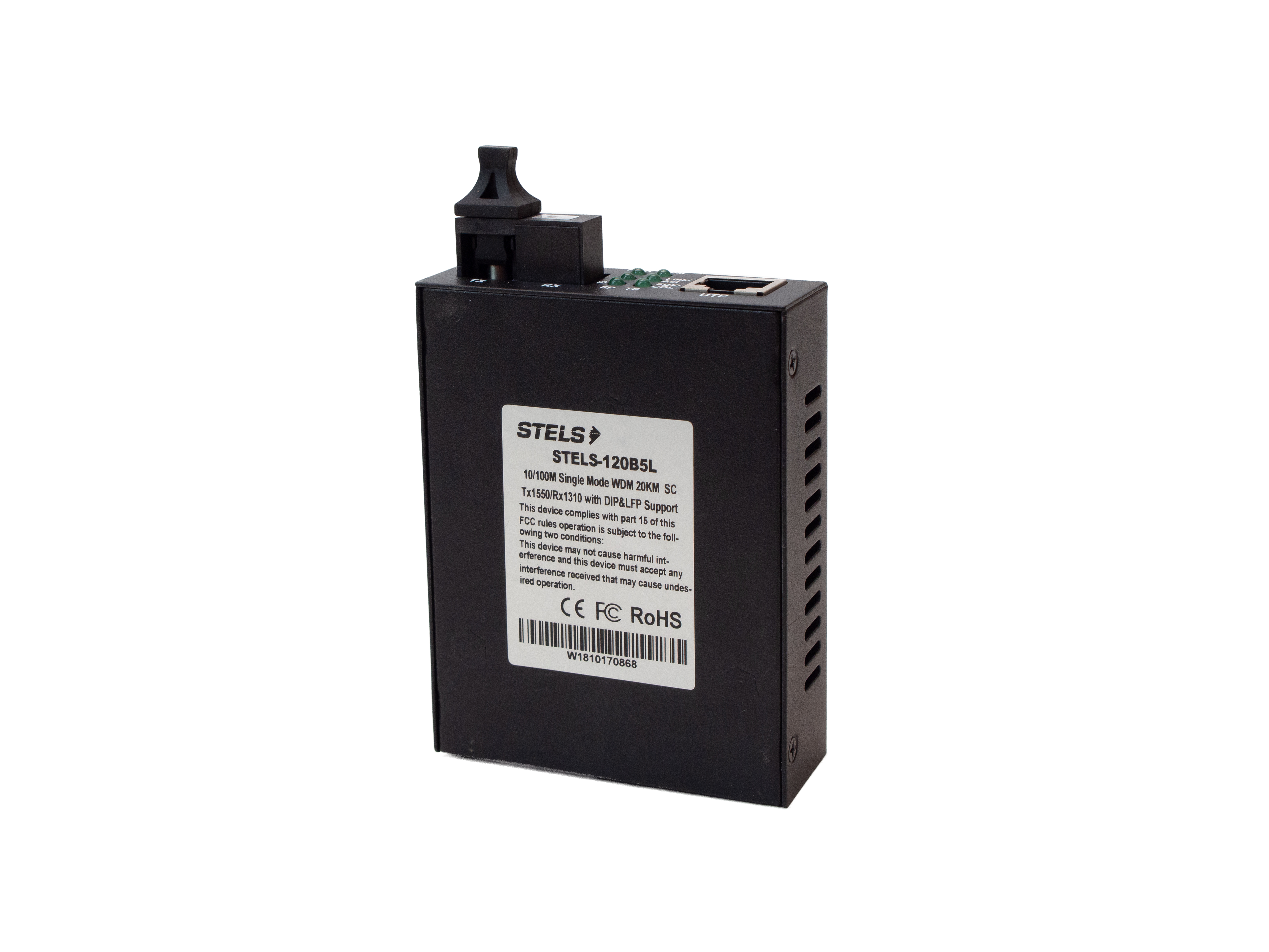 Оптический интерфейс: Одноволоконный (WDM) с разъемом SC. Длина волны зависит от модели (в паре с STELS-120B5L на другом конце обычно используется зеркальный модуль с обратными длинами волн).
