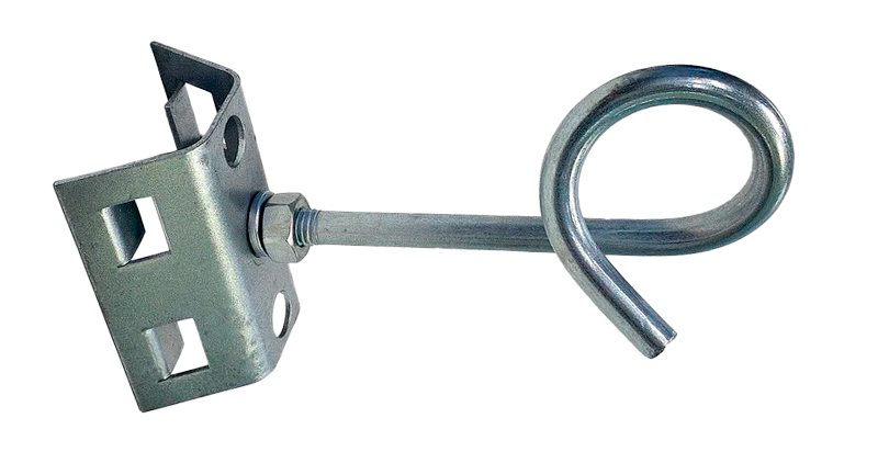 Узел крепления изготавливается из стали с защитным покрытием из цинка в климатическом исполнении УХЛ категория 1 по ГОСТ 15150-69. Соединение крюка и опорной площадки производится при помощи 4 гаек, 2 шайб и стопорных колец. Конструкция является разборной.