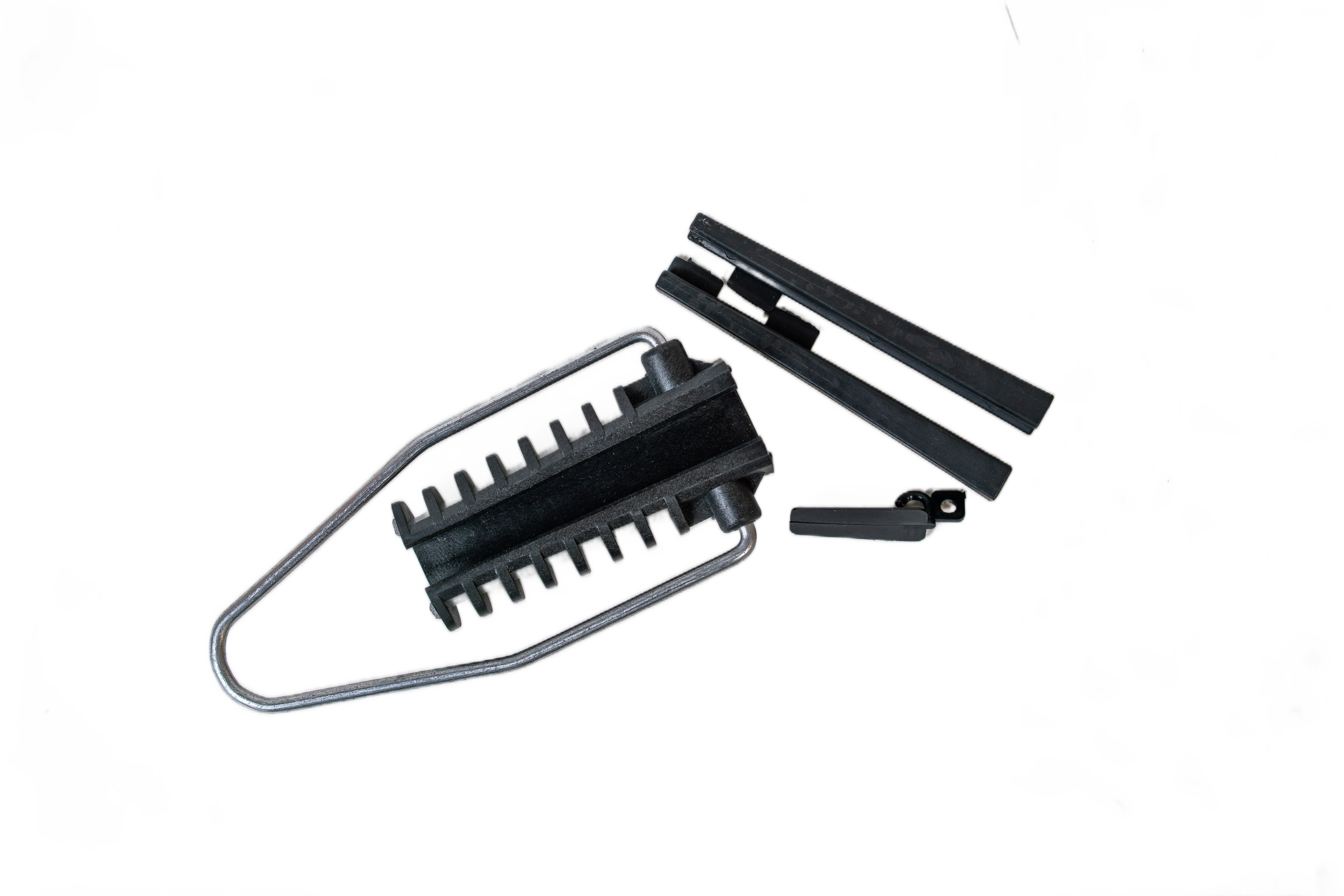 Корпус и клинья анкерного зажима Н26 изготовлены из высокопрочного пластика, стабилизированного к воздействию ультрафиолетовых лучей. Для удобства использования в зажимы предусмотрен фиксатор, предохраняющий от выпадения клиньев и система направляющих, которая обеспечивает синхронное перемещение клиньев и их крышкой. Крепежную петлю из стальной оцинкованной проволоки Ø5 мм при необходимости можно снять, что обеспечивает дополнительное удобство в монтаже.