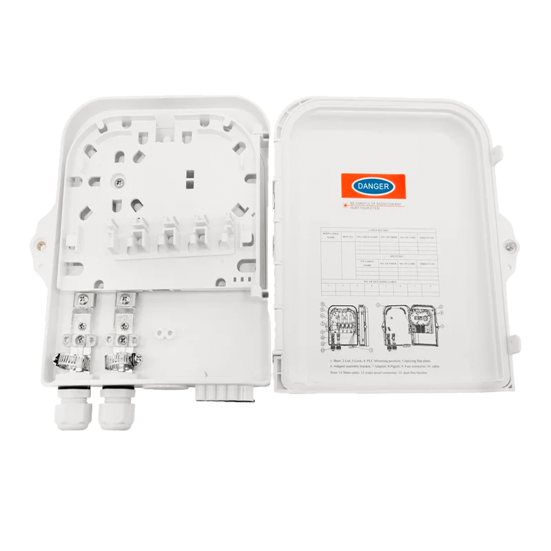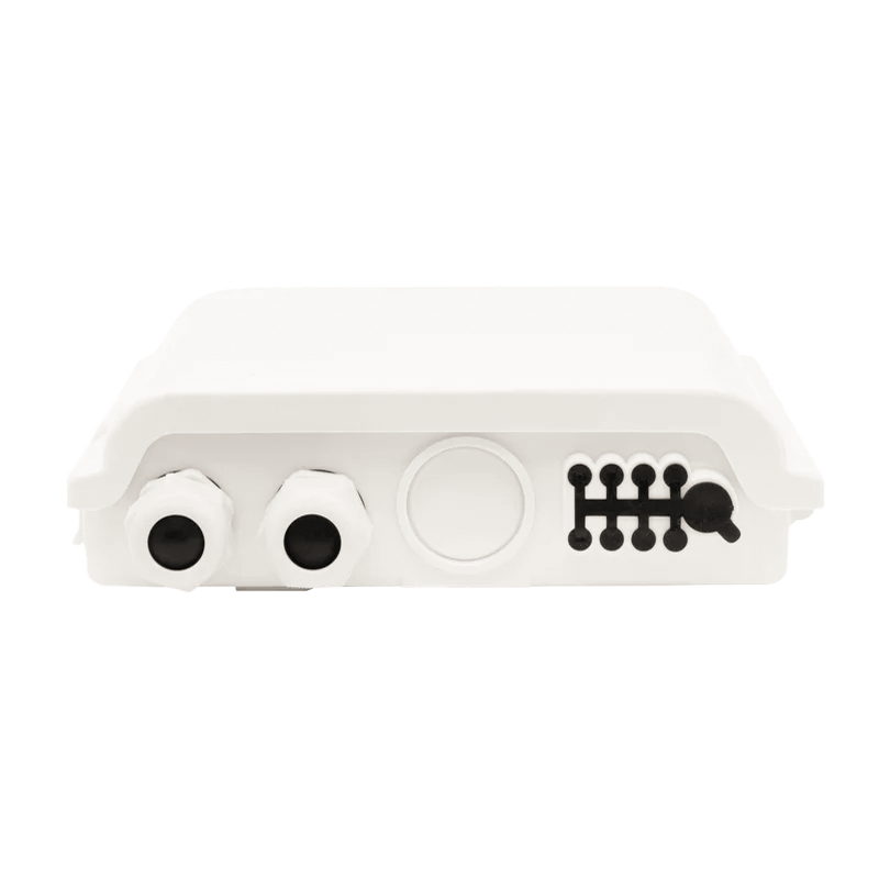 Конструкция оптического бокса BO-FTTH-FDB-08J допускает ввод двух линейных оптических кабелей и до 8 абонентских отводов.